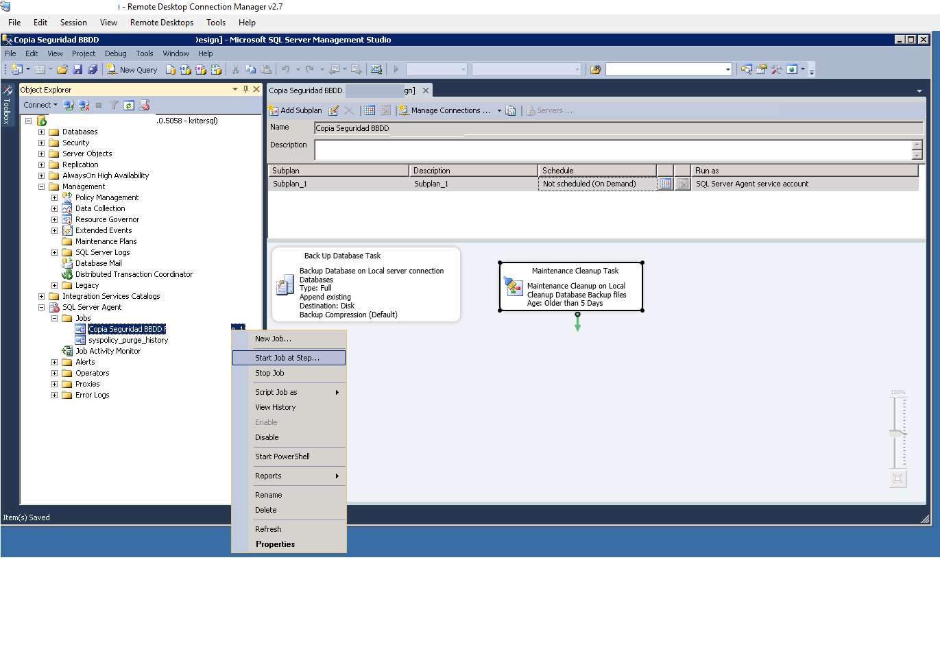 ver que se ha creado una tarea en el SQL Server Agent -> Jobs.